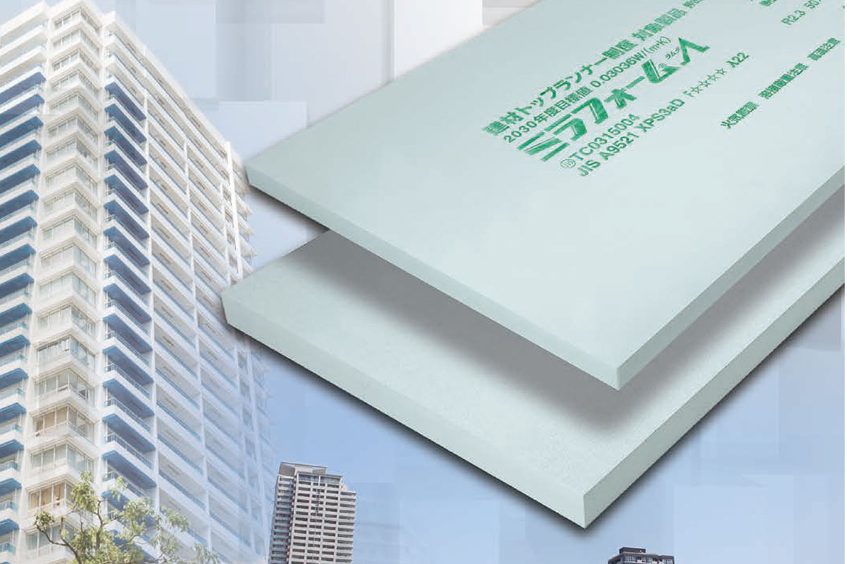 「ミラフォームΛ(ラムダ)」はJSPがこれまで培ったプラスチック発砲技術を駆使して開発した高性能・新次世代型断熱材です。「ミラフォーム」に特殊技術を加えることで、今まで押出法ポリスチレンフォームでは限界とされていた断熱性能をさらにレベルアップすることに成功しました。
